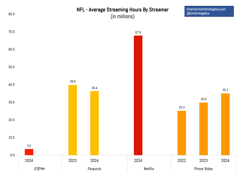 If we look at this graph from The Entertainment Strategy Guy, we can clearly see that Prime has continued to increase their TNF viewership every year.