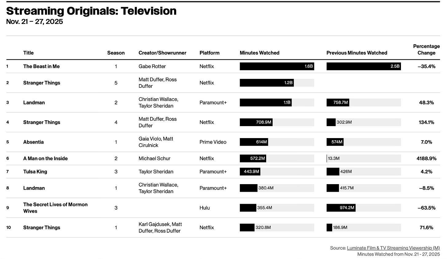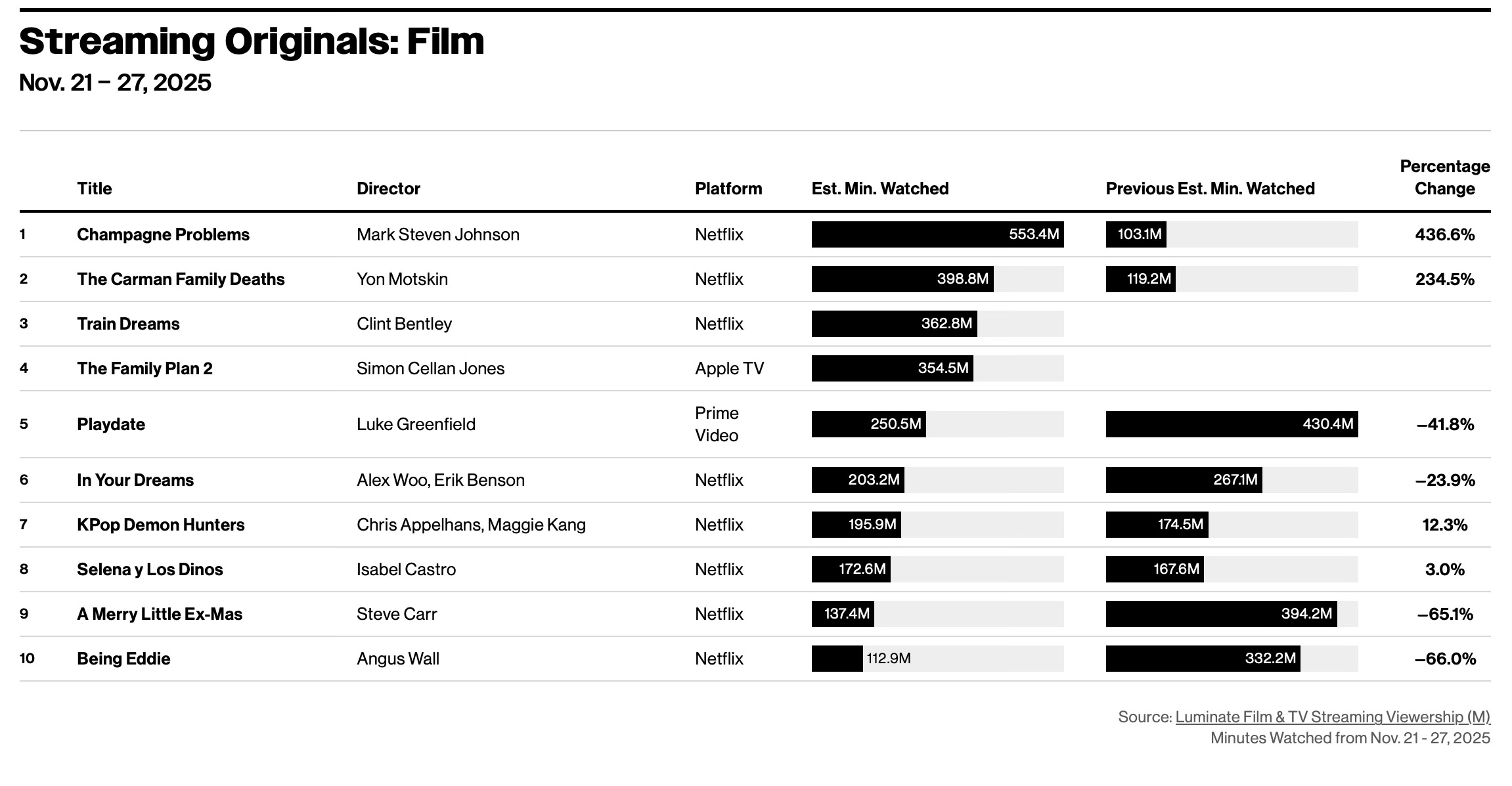 Latest Luminate Top Ten data (November 21st - November 27th)