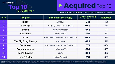 Latest Nielsen Top Ten data (January 5th - January 11th)